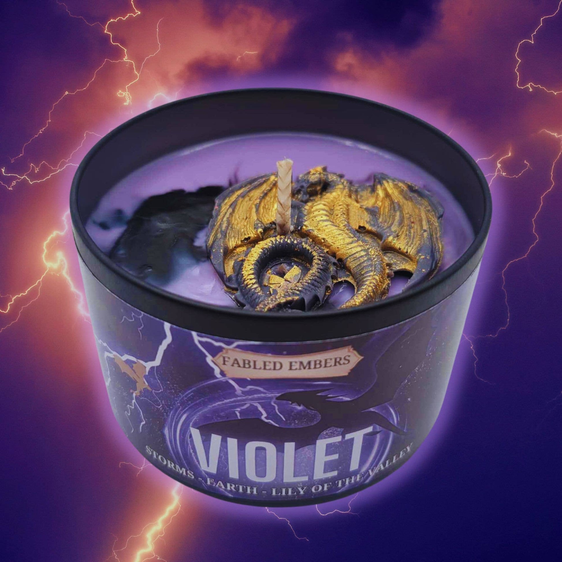 * Purple wax with black swirl + dragon wax melt decoration (dragon color may vary)