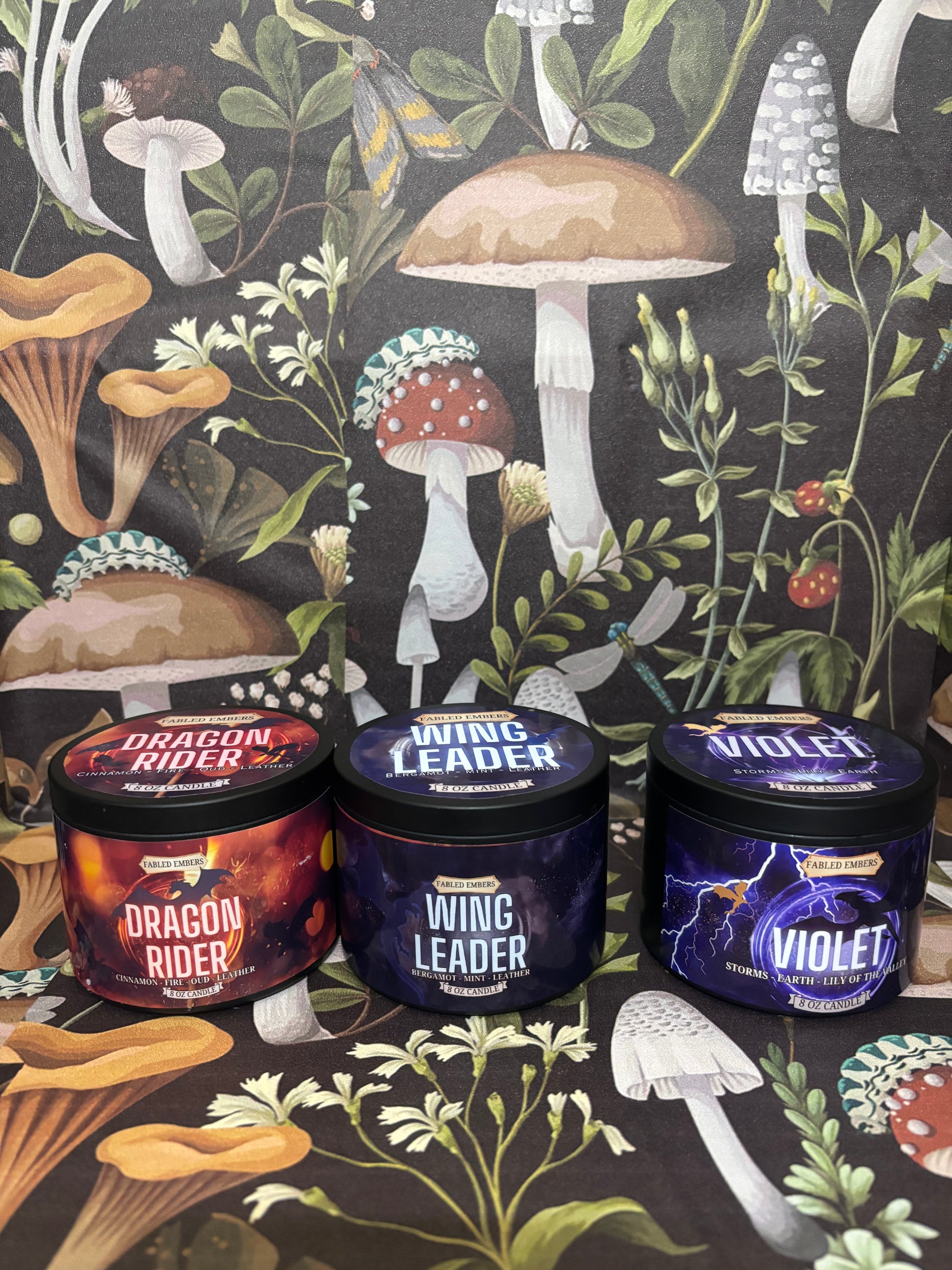 8 ounce VIOLET Candle in BLACK TIN | Book Lovers | dragons